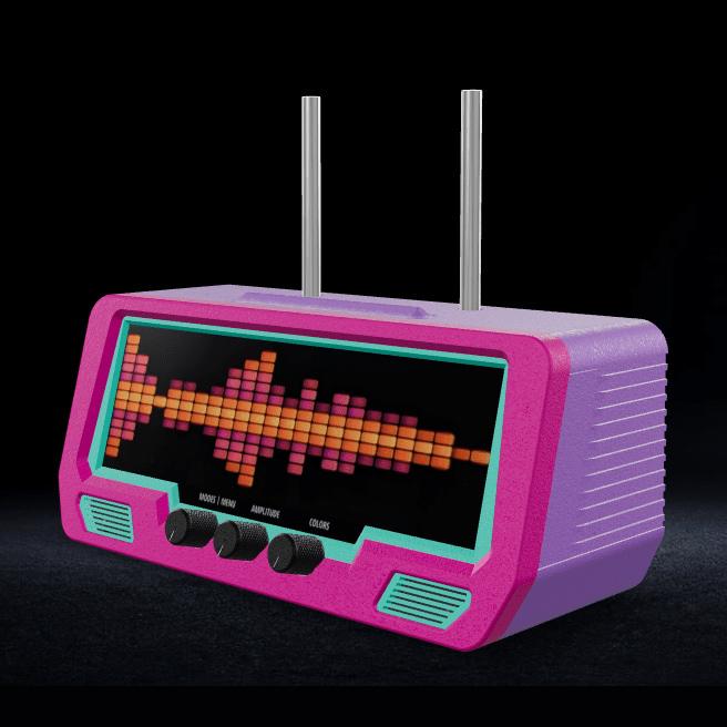 Handcrafted LED visualizer with 384 LEDs, real-time spectrum, custom messages, and a built-in clock. Customize it to match your style.